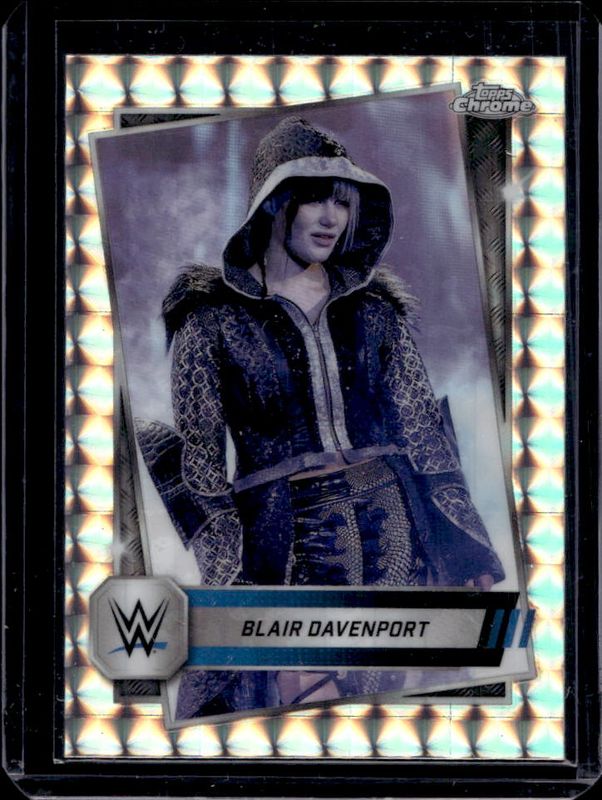 The Blair Davenport 2025 Topps Chrome WWE #189 Geometric Refractor card is 1 of 61 Blair Davenport's card variations in the 2025 Topps Chrome WWE set being tracked by Sports Card Investor, including Base, Black & Gold Refractor, Neon Green & Black Refractor, Pink Shimmer Refractor, and Prism Refractor.
