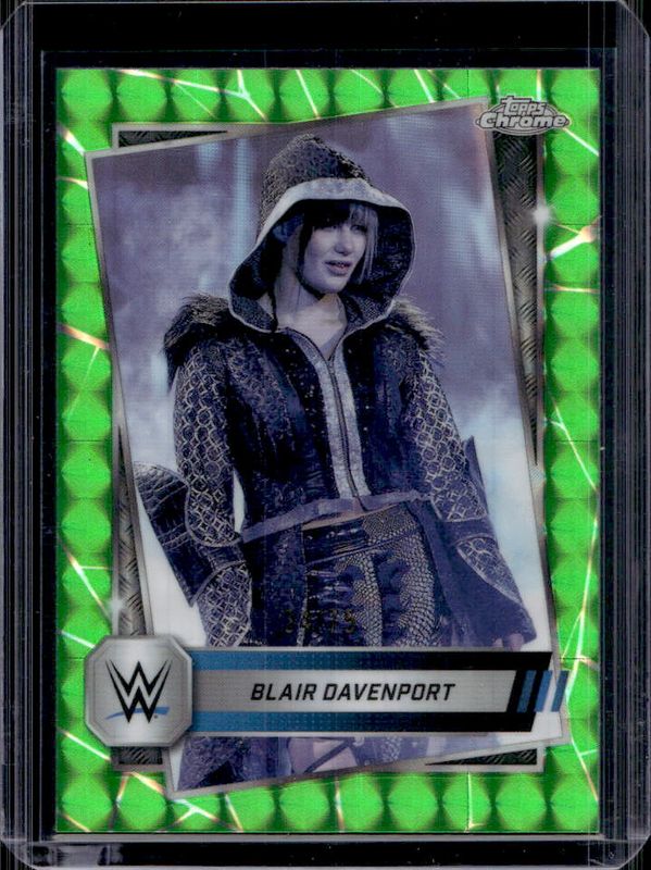 The Blair Davenport 2025 Topps Chrome WWE #189 Neon Green Geometric Refractor /75 card is 1 of 61 Blair Davenport's card variations in the 2025 Topps Chrome WWE set being tracked by Sports Card Investor, including Base, Black & Gold Refractor, Geometric Refractor, Neon Green & Black Refractor, and Pink Shimmer Refractor.