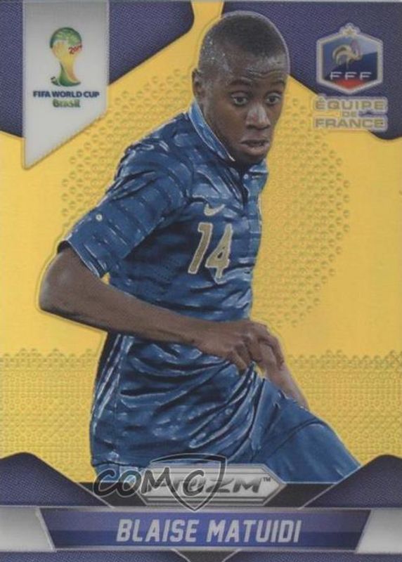 This card is 1 of 12 Blaise Matuidi's card variations in the 2014 Prizm World Cup set being tracked by Sports Card Investor, including Base, Blue & Red Wave, Red White Blue Power Plaid, Silver, and Yellow & Red Pulsar.