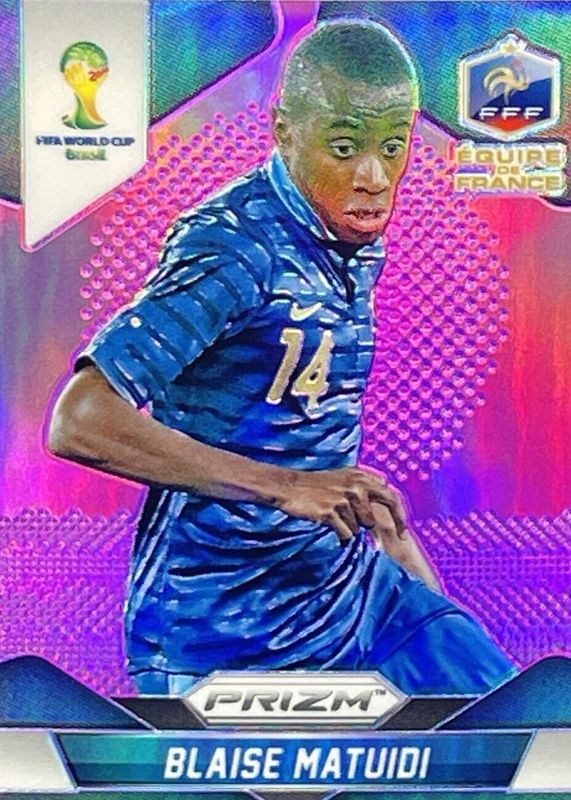This card is 1 of 12 Blaise Matuidi's card variations in the 2014 Prizm World Cup set being tracked by Sports Card Investor, including Base, Blue & Red Wave, Red White Blue Power Plaid, Silver, and Yellow & Red Pulsar.