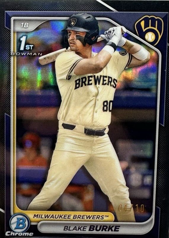 The Blake Burke 2024 Bowman Draft #BDC-95 Chrome - Black Refractor /10 (1st) card in Raw condition has not changed in price in the last 30 days and was last sold for $88.88 .