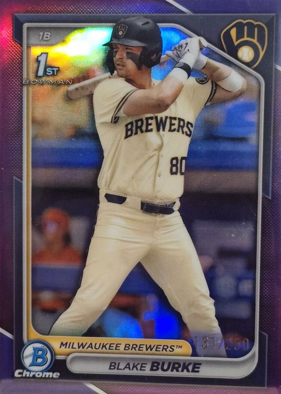 2024 Bowman Draft Blake Burke Chrome Purple Refractor 1st #/250 Brewers