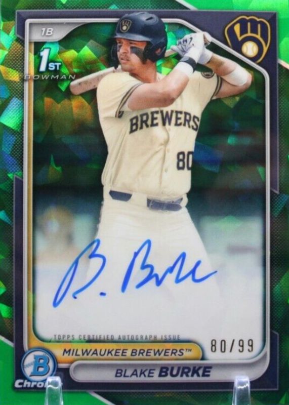 2024 1ST Bowman Draft Blake Burke Milwaukee Brewers Auto Green Sapphire 37/99