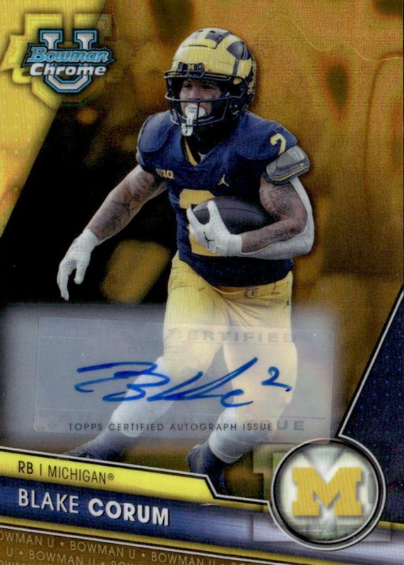 Blake Corum 2023 Bowman Chrome University #182 Prospect Auto - Gold Lava Refractor /50 PSA 9 Price Guide