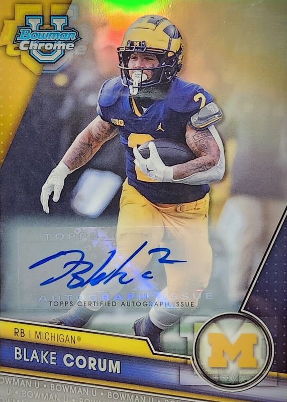 2023 Bowman Chrome University Blake Corum #182 Refractor Auto /499 Michigan UM