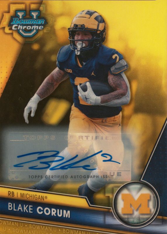 Blake Corum 2023 Bowman Chrome University #182 Prospect Auto - Yellow Refractor /75 RAW Price Guide