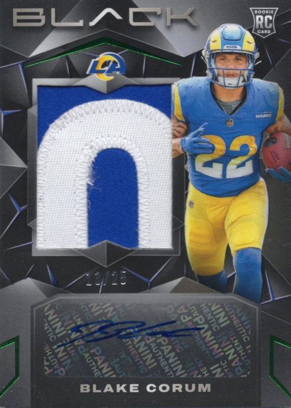 2024 Panini Black #219 Blake Corum Emerald RC RPA Patch Auto /25 Rams