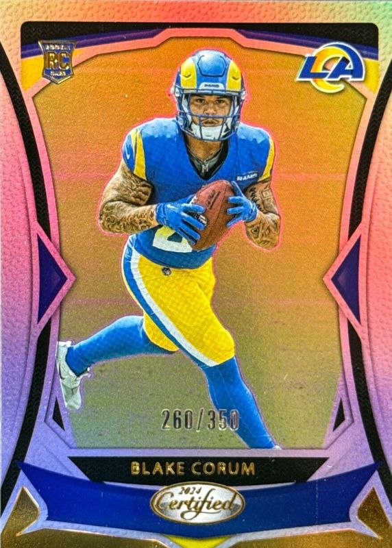 BLAKE CORUM 2024 PANINI CERTIFIED FOOTBALL RC ROOKIE CARD 214/350 #160 - RAMS