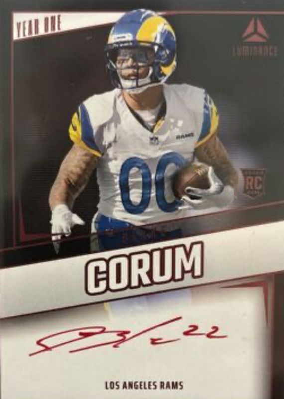 This card is 1 of 4 Blake Corum's card variations in the 2024 Luminance set being tracked by Sports Card Investor, including Year One Signatures, Year One Signatures - Green, and Year One Signatures - Purple.