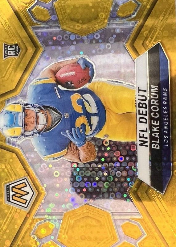 The Blake Corum 2024 Mosaic #278 NFL Debut - No Huddle Gold /10 Rookie card in Raw condition has not changed in price in the last 30 days and was last sold for $65.00 .