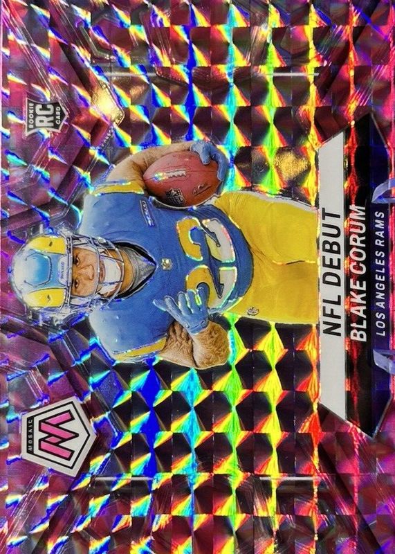 The Blake Corum 2024 Mosaic #278 NFL Debut - Pink Camo Rookie card in Raw condition has moved up $0.10 (+10.0%) in the last 30 days and was last sold for $1.16 .