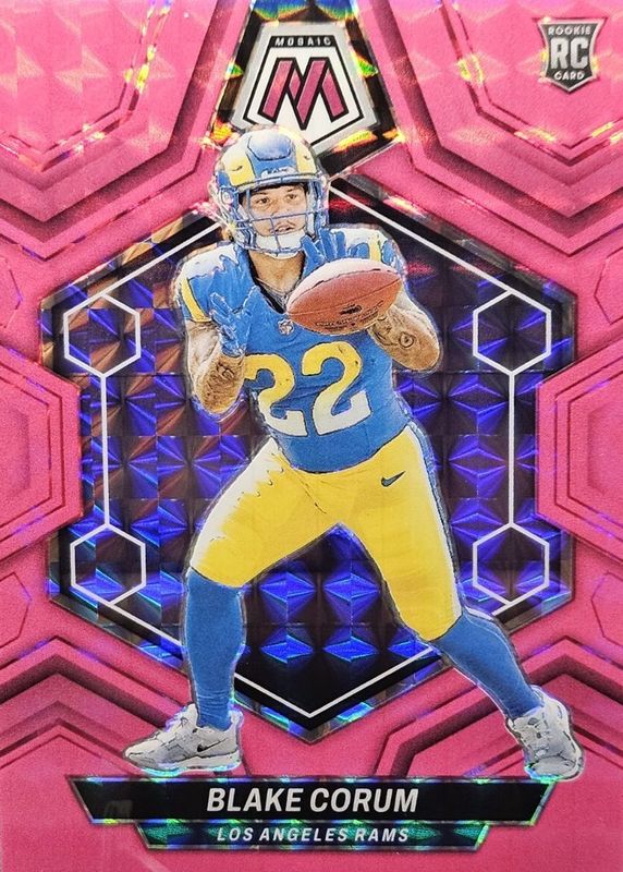 The Blake Corum 2024 Mosaic #368 Pink Fluorescent /10 Rookie card in Raw condition has not changed in price in the last 30 days and was last sold for $55.00 .