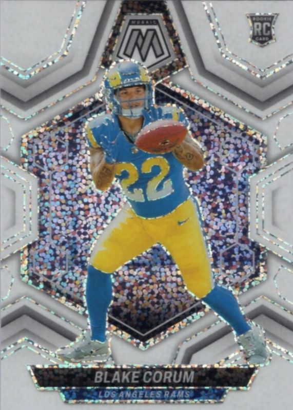 This card is 1 of 98 Blake Corum's card variations in the 2024 Mosaic set being tracked by Sports Card Investor, including Base, NFL Debut, Green, Mosaic, and NFL Debut - Green.