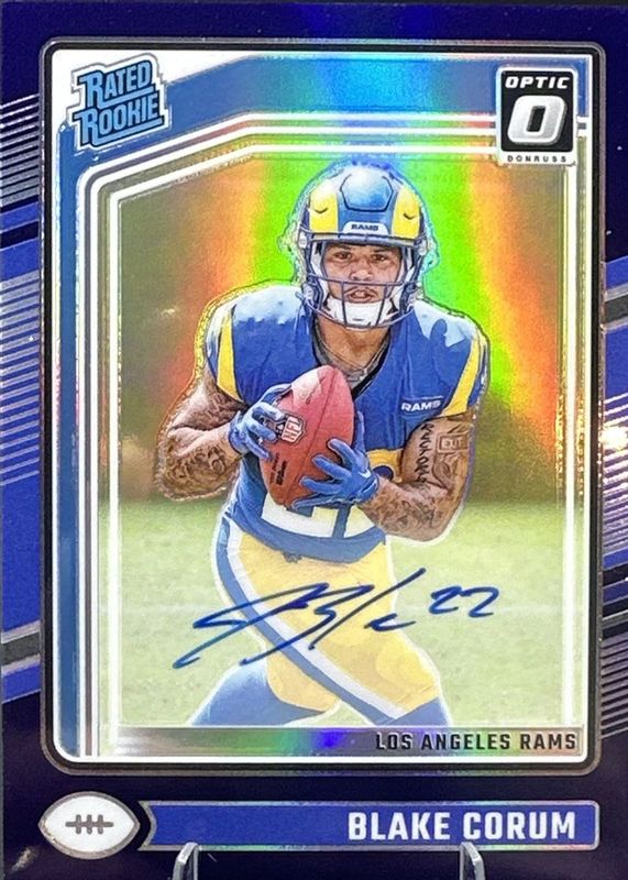 2024 Donruss Optic Purple Prizm #208 Blake Corum Rams RC Rookie AUTO /35 On Card