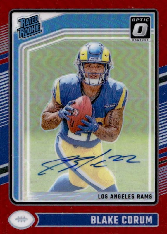 Best Prices Available For Sale of Blake Corum 2024 Optic #208 Rated Rookie Autographs - Red /75