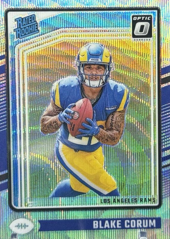 The Blake Corum 2024 Optic #208 Wave /300 Rookie card in Raw condition has not changed in price in the last 30 days and was last sold for $5.50 .