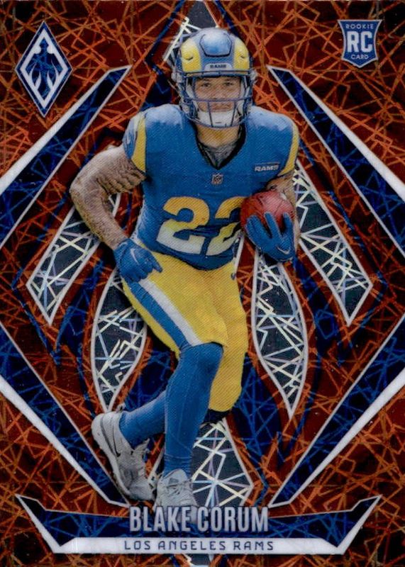 This card is 1 of 79 Blake Corum's card variations in the 2024 Phoenix set being tracked by Sports Card Investor, including Base, Hyper, Ice, International, and Lazer.