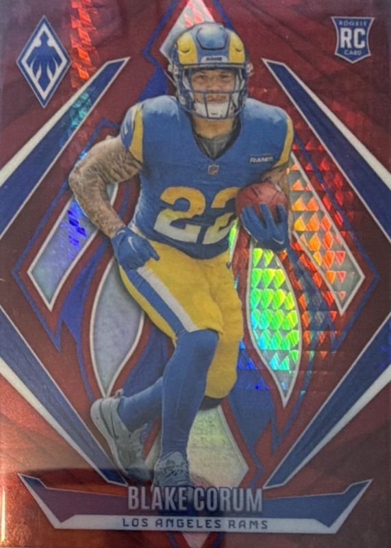 This card is 1 of 79 Blake Corum's card variations in the 2024 Phoenix set being tracked by Sports Card Investor, including Base, Hyper, Ice, International, and Lazer.
