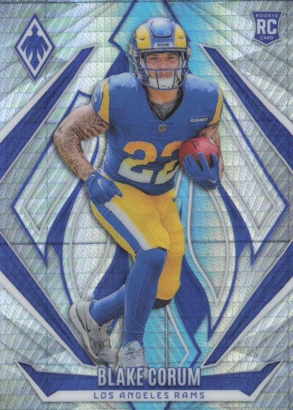 This card is 1 of 79 Blake Corum's card variations in the 2024 Phoenix set being tracked by Sports Card Investor, including Base, Hyper, Ice, International, and Lazer.