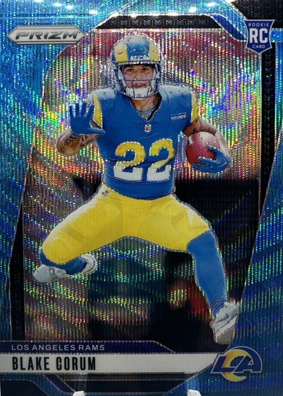 BLAKE CORUM 2024 PANINI PRIZM #308 BLUE WAVE RC 144/230 RAMS