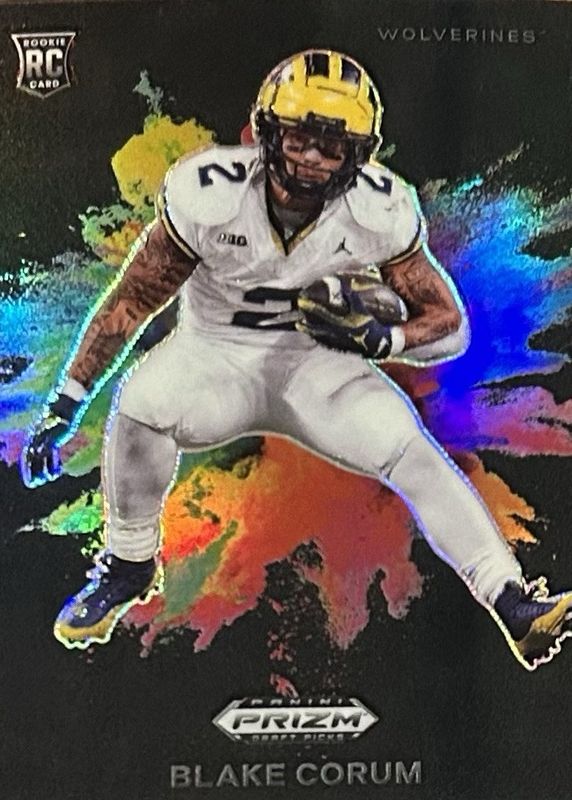 The Blake Corum 2024 Prizm Draft Picks #CB-20 Color Blast /(SSP) Rookie card in Raw condition has moved down -$35.00 (-30.4%) in the last 30 days and was last sold for $80.00 .