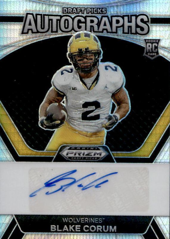 The Blake Corum 2024 Prizm Draft Picks #DPA-BCM Draft Picks Autographs - Hyper Rookie card in Raw condition has not changed in price in the last 30 days and was last sold for $6.50 .