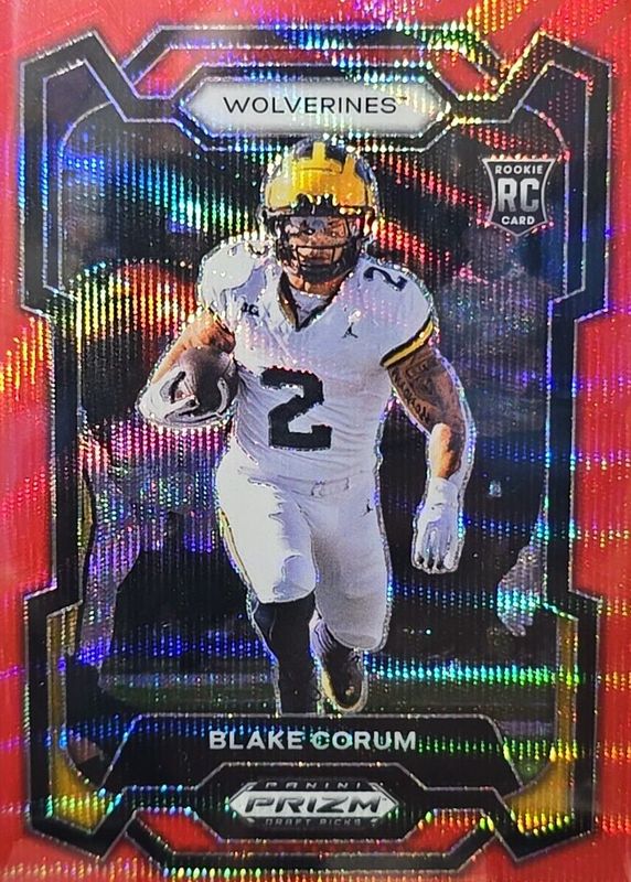 💥 2024 Prizm Draft Picks Red Wave Rookie BLAKE CORUM No. 128! MICHIGAN 💥
