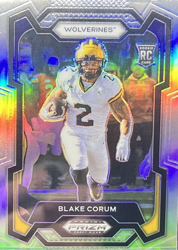 The Blake Corum 2024 Prizm Draft Picks #128 Silver Rookie card in Raw condition has moved up $0.50 (+33.6%) in the last 30 days and was last sold for $1.99 .