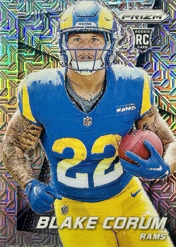 The Blake Corum 2024 Prizm #9 Prizm Flashback Rookies - Mojo /25 card in Raw condition has not changed in price in the last 30 days and was last sold for $43.34 .