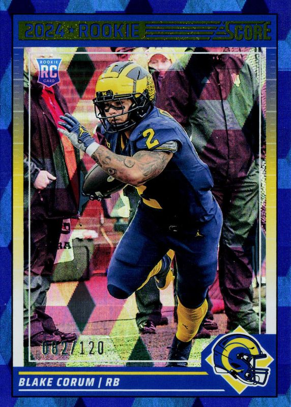 2024 Panini Score Blake Corum #389 Rookie RC Blue Cubic Refractor /120 LA Rams
