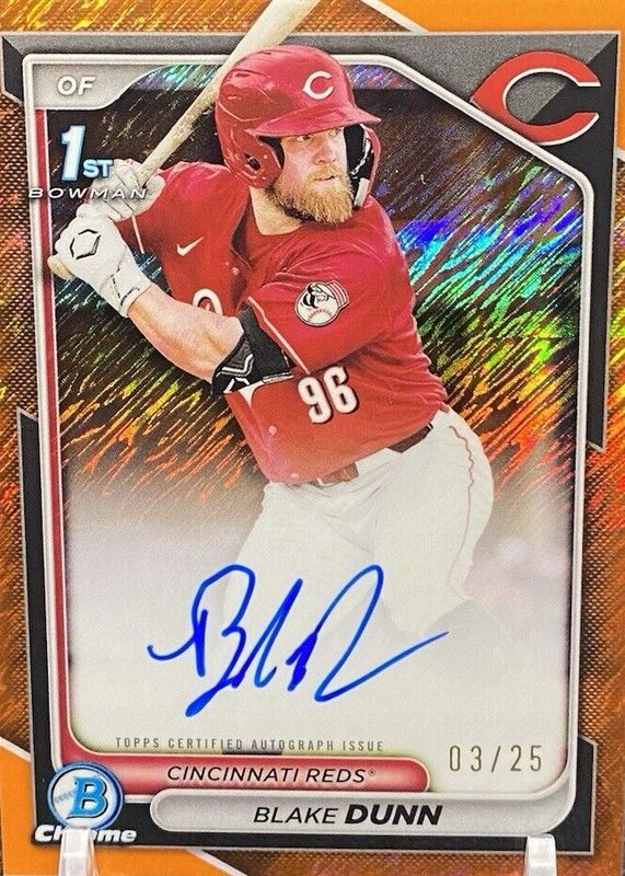 2024 Bowman Chrome Blake Dunn 1st Prospects Auto Orange Shimmer /25 Reds