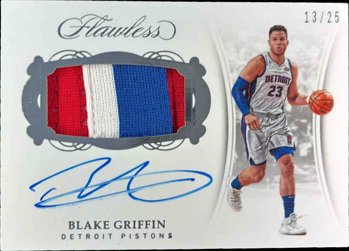 The Blake Griffin 2017 Flawless #HP-BG Horizontal Patch Auto /25 card is 1 of 30 Blake Griffin's card variations in the 2017 Flawless set being tracked by Sports Card Investor, including #37 Base /5, #121 Base /5, #37 Double /10, #37 Triple /5, and #37 Bronze FOTL /2.