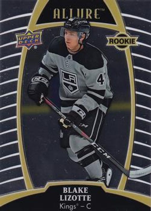 The Blake Lizotte 2019 Upper Deck Allure #87 Base Rookie card is 1 of 40 Blake Lizotte's card variations in the 2019 Upper Deck Allure set being tracked by Sports Card Investor, including Base, Pewter, Pink Diamond, Red Rainbow, and White Rainbow.