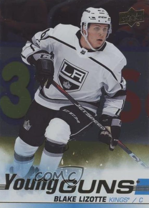 This card is 1 of 7 Blake Lizotte's card variations in the 2019 Upper Deck set being tracked by Sports Card Investor, including Young Guns Base, Young Guns - Clear Cut, Young Guns - Clear Cut Exclusives, Young Guns - Speckled Rainbow Foil, and Young Guns - UD Exclusives /100.