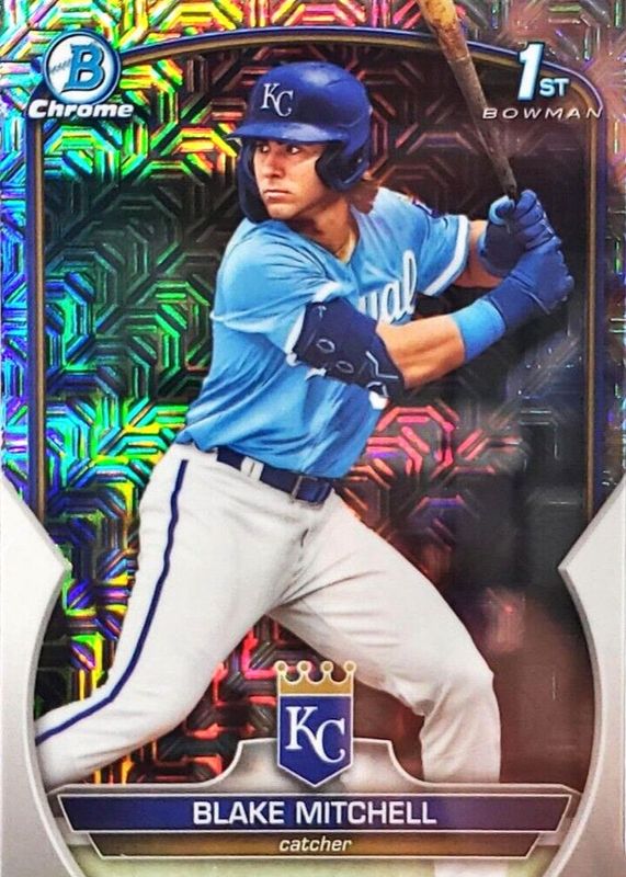 This card is 1 of 44 Blake Mitchell's card variations in the 2023 Bowman Draft set being tracked by Sports Card Investor, including Chrome (1st), Chrome - Lunar Glow Refractor (1st), Chrome - Pearl Refractor (1st), Chrome - Refractor (1st), and Chrome - Sky Blue Refractor (1st).