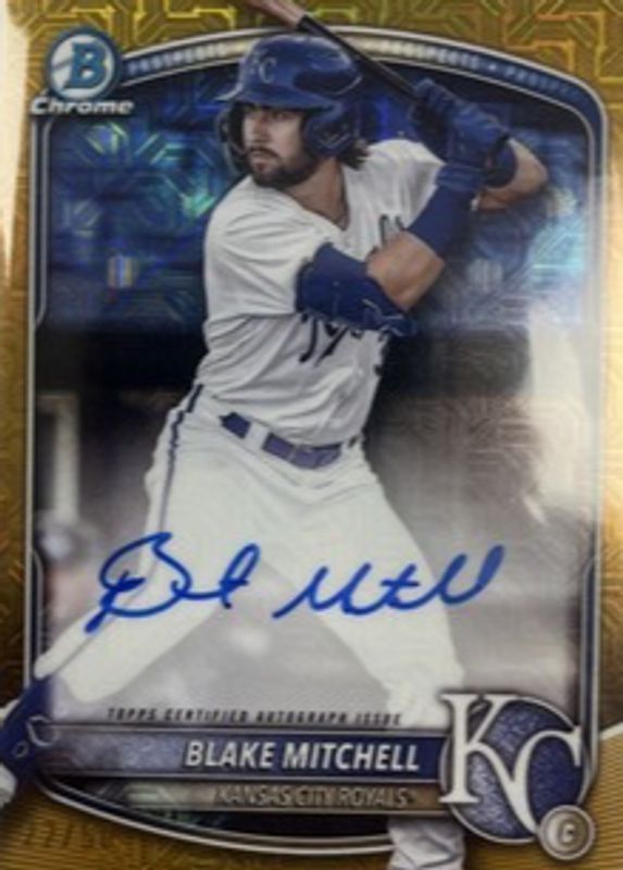 2025 Bowman Chrome MOJO Blake Mitchell Refractor GOLD Auto /50 Royals BMA-BMI