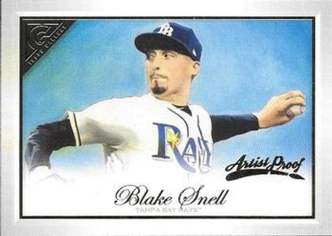 The Blake Snell 2019 Topps Gallery #59 Artist Proof card is 1 of 30 Blake Snell's card variations in the 2019 Topps Gallery set being tracked by Sports Card Investor, including Base, Wood, Private Issue /250, Green /99, and Blue /50.