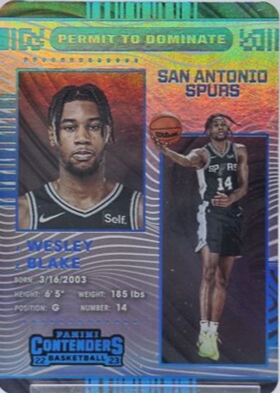 2022-23 Contenders Wesley Blake Permit To Dominate Rookie RC #5 Spurs