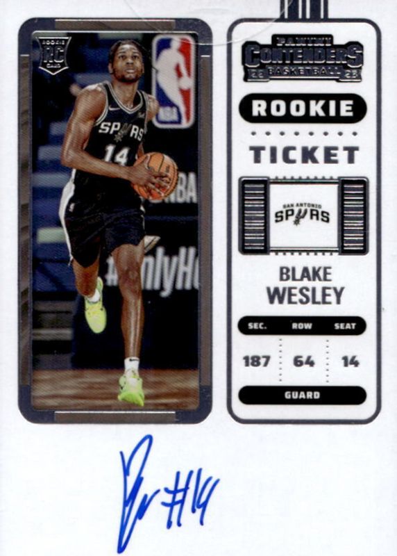BLAKE WESLEY NBA Spurs 2022-23 Panini Contenders RC Auto #133 Card