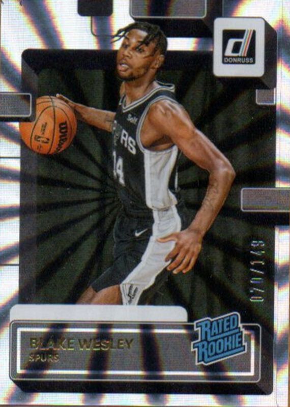 The Blake Wesley 2022 Donruss #225 Holo Laser /149 Rookie card in Raw condition has not changed in price in the last 30 days and was last sold for $0.99 .