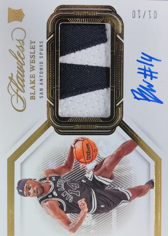 Auctions Ending Soon for Blake Wesley 2022 Flawless #HPA-BKW Horizontal Patch Autographs - Gold /10 Rookie RAW