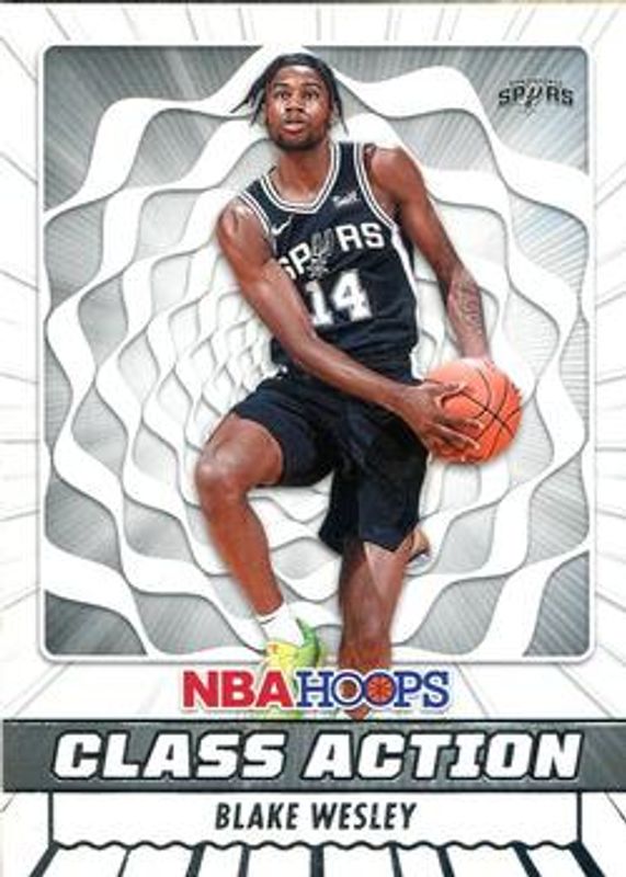 The Blake Wesley 2022 Hoops #21 Class Action Rookie card is 1 of 43 Blake Wesley's card variations in the 2022 Hoops set being tracked by Sports Card Investor, including Base, Blue, Hyper Blue, Impulse, and Neon Green.