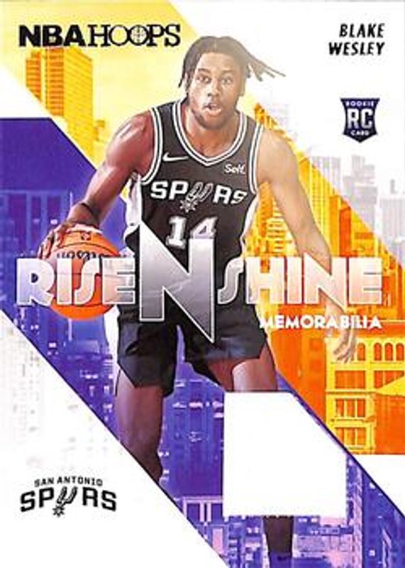 The Blake Wesley 2022 Hoops #RS-BW Rise N Shine Memorabilia Rookie card is 1 of 43 Blake Wesley's card variations in the 2022 Hoops set being tracked by Sports Card Investor, including Base, Blue, Hyper Blue, Impulse, and Neon Green.
