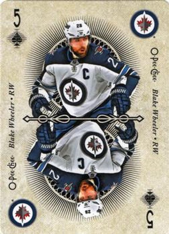 The biggest 30-day change Blake Wheeler cards are 2018 O-Pee-Chee #5♠ Playing Cards, 2018 O-Pee-Chee #131 Silver, and 2018 O-Pee-Chee #131 Retro.