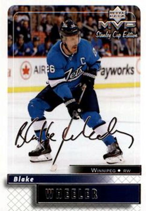 Blake Wheeler 2019 Upper Deck MVP #11 Stanley Cup Edition 20th Anniversary Silver Script RAW Price Guide