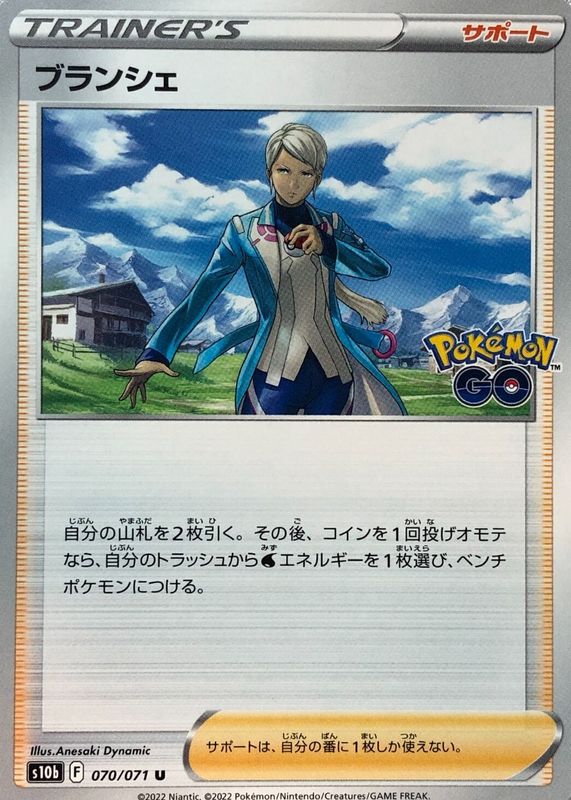 This card is 1 of 3 Blanche's card variations in the 2022 Japanese Sword & Shield: Pokemon GO set being tracked by Sports Card Investor, including Hyper Rare, and Super Rare (Full Art).