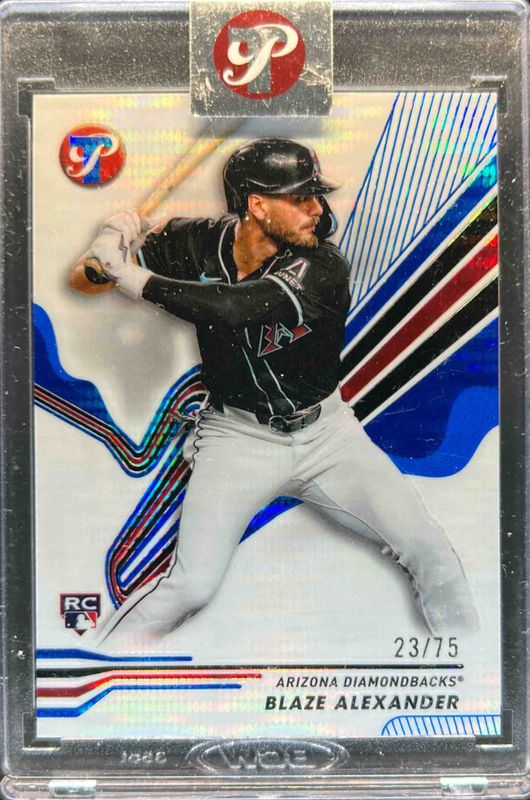 The Blaze Alexander 2024 Topps Pristine #132 Pristine Blue Refractor /75 Rookie card is 1 of 18 Blaze Alexander's card variations in the 2024 Topps Pristine set being tracked by Sports Card Investor, including Base, Pristine Refractor, Refractor, Green Refractor /150, and Pristine Purple Refractor /99.