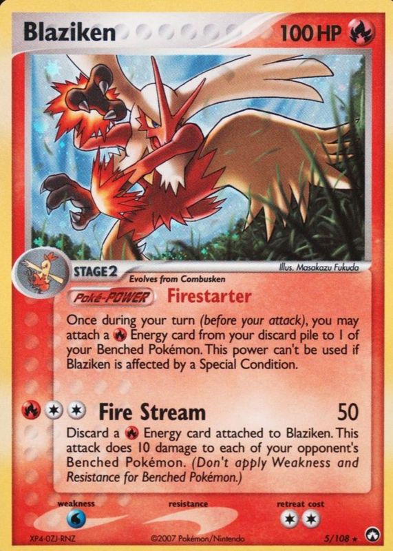 The Blaziken 2007 EX: Power Keepers #005/108 Holo card in Raw TCG (Near Mint) condition has moved up $15.27 (+153%) in the last 30 days and was last sold for $25.27 .