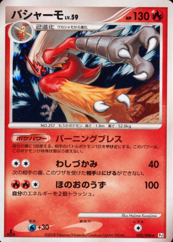 The Blaziken 2008 Japanese Platinum: Galactic's Conquest #022/096 1st Edition Holo card in Raw TCG (Near Mint) condition has not changed in price in the last 30 days and was last sold for $2.77 .