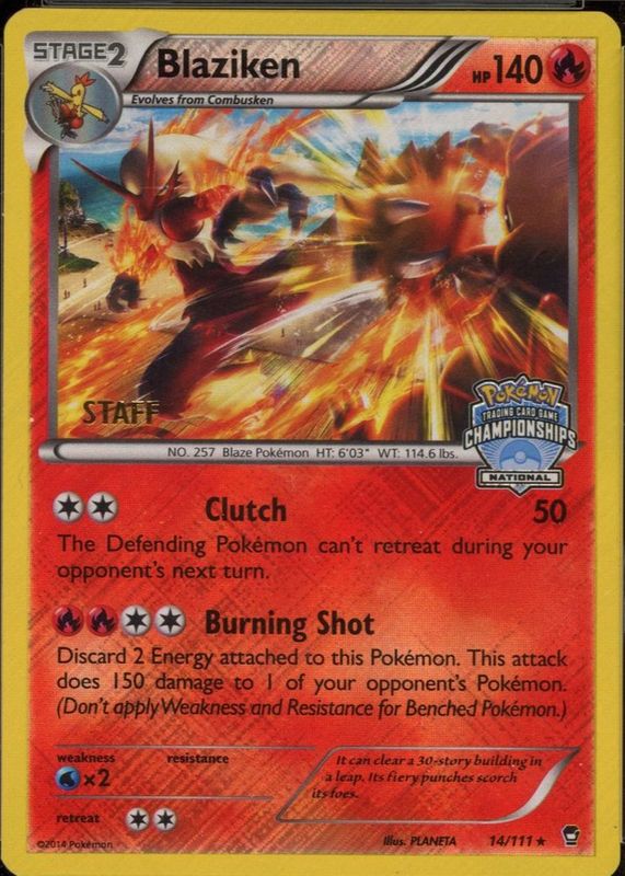 Blaziken 2014 XY: Furious Fists #014/111 Promo (National Championships - STAFF) RAW TCG (MODERATELY PLAYED) Price Guide